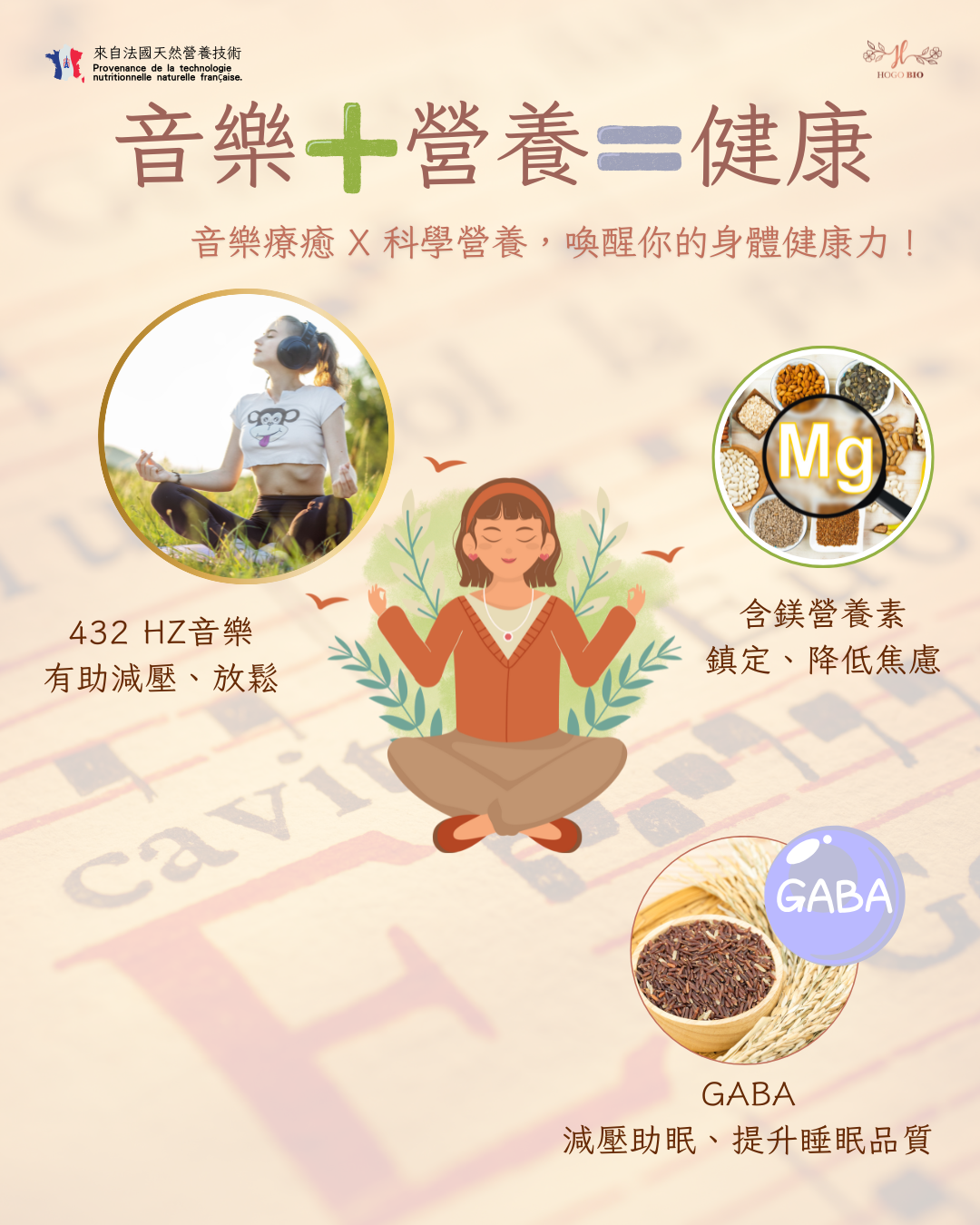 這些成分在科學上具明確的放鬆及助眠機轉,配合音樂療癒使用,更能產生協同效果,達到由內而外的放鬆狀態。